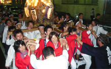 9月に行われる、地域のお祭りに毎年参加しています。お神輿をかついで、本社や崎陽軒本店前を練り歩いたり、太鼓をたたくこともできます。真っ赤なハッピを着てとても楽しいお祭りです。