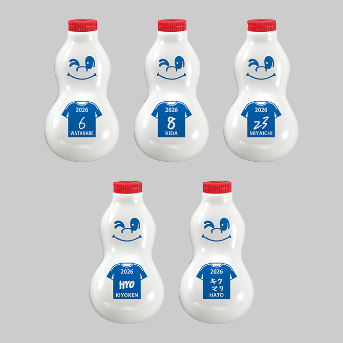 愛され続けている崎陽軒の「チャーハン」をメインに人気のおかずを詰め合わせ、J1百年構想リーグ限定の掛け紙をまといます。さらに、横浜F・マリノスのチームカラーをイメージした赤・白・青の「トリコロールひょうちゃん」も、装いを新たに!選手の名前と直筆の背番号をプリントしたひょうちゃん、崎陽軒のひょうちゃん(HYO)、tvkの「キックオフF・マリノス(キクマリ)」の名前が書かれたひょうちゃん、どれが入っているかは開けてみてのお楽しみです。
